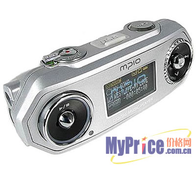 MPIO FG100的外观是复古的收录机造型,左右两个圆形的控制区很像收录机的喇叭,而中间的显示屏也很像磁带仓,这种独特的构思和创意让人觉得不同反响。31×82×28.5mm的尺寸,不含电池净重40.5g,称得上是MP3家族中的大块头。