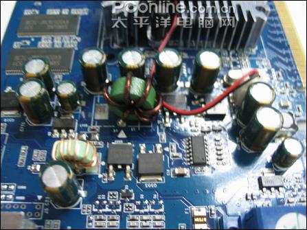 显卡核心工作频率为425MHz,比官方300MHz高出125MHz,性能得到提升。显存则为三星3.6ns TSOP颗粒,8颗显存在正面等间距分布,显存容量为128MB、位宽128bit,默认频率550MHz,并具有不错的超频潜力。