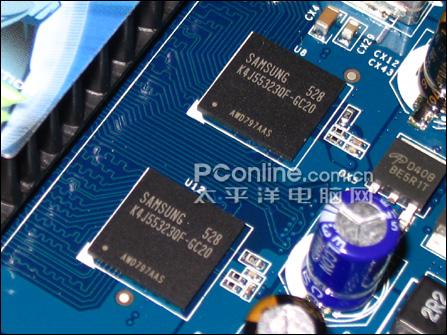 显卡的默认频率为500MHz/1000MHz,这样的频率超过了6600(300MHz/550MHz),与6600GT持平,这是目前6600LE显卡起始频率最高的产品之一。显卡正面板载4颗三星mBGA封装2ns GDDR3颗粒,规格为8M×32bit,组成容量为128MB、位宽为128bit的显存单元。