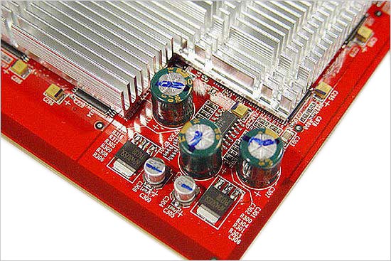 这款X550 128M静音版从它的名字上就可以看出,该显卡的工作时的噪音是非常的低的,但是看了产品以后,我们就会发现,其实它并不是噪音低,而是完全的无声。它采用了火红色的PCB板设计,在整个显卡表面我们只能够看到一个面积颇大的散热片,将核心同显存全部覆盖起来,这种一体化散热设计在发热量并不是很大的中低端显卡产品中十分常见。