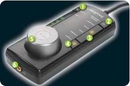 GigaWorks ProGamer G500也采用了数字线控。玩家们可以很方便的通过它进行开/关机、静音、调节各声音道的音量。也可以通过这个线控,打开GigaWorks ProGamer G500的CMSS混音功能,或者是连接耳机玩游戏。