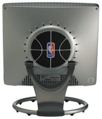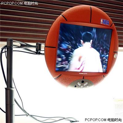 边框类似篮球场上的木地板,底座还设计成为了篮筐的样式,将液晶悬挂起来后,它还能满足我们扣篮的欲望……
