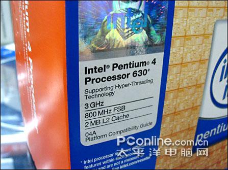 熟悉DIY市场的朋友相信都知道,在英特尔Prescott核心的Pentium4处理器当中,最多消费者选购的是频率为3.0G的Pentium4 530,这款型号为630的Pentium4处理器继承了P4 530的各种优秀特性:基于LGA775架构、Prescott核心、0.09um工艺、3.0G运行频率、800前端总线和支持HT超线程,但P4 630不仅仅是530的64位版本,它的L2二级缓存已经从原来的1M升级到了2M(Pentium4 6xx系列处理器的L2均为2M),性能更为强劲了,而它的价格却仅仅比P4 530贵了50元左右,是INTEL高端处理器阵营最超值的处理器。