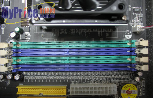 微星k8n neo4-f主板提供有4条184pin DIMM内存插槽,分成两种颜色,相同的颜色为一组通道。支持双通道 DDR400/DDR333/DDR266 SDRAM 内存,最高可达4GB。