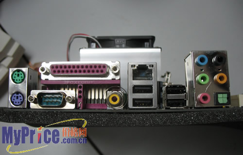 微星K8N Neo4-F主板后部的I/O接口采用了全标准设计,提供了一个并行接口,2个PS/2接口(鼠标键盘),一个COM接口,一个同轴SPDIF输出接口,4个USB2.0接口,一个RJ45网络接口和1个6合1音效输出/输入连结接口(含一个数字SPDIF输出)。