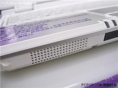 机身左侧依次分布有PCMCIA卡槽、IEEE1394接口、USB2.0接口、RJ45网卡接口。