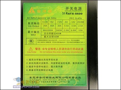 劲霸ATX-S600的铭牌
