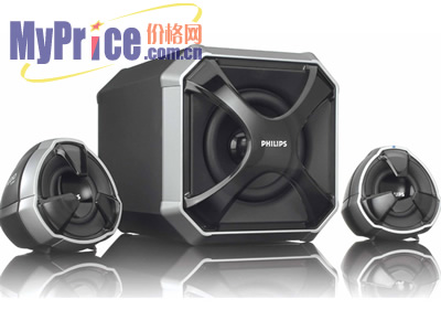 MMS430的低音炮采用了全木质材质,无接点技术的运用更是体现了飞利浦的精湛工艺。5.5寸的低音单元、后置导向孔等设计使音质更深沉有力,有效的降低了动态响应失真。卫星音箱同低音炮一样采用了半透明的黑色有机玻璃罩,只是由X样式换成了3瓣的莲花式。当然,无接点的技术再一次运用。