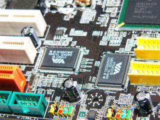 南桥方面,MSI 945G Platinum采用上拥有RAID功能的ICH7R,支援4 个Serial ATA II硬碟接口并提供RAID 0、1、5、10、及Intel的Matrix RAID,由于Intel新一代南桥只建有一个IDE Channel略为不足,因此主机板额外建有一颗VIA的VT6410 IDE RAID晶片,多支援2个IDE Channel并提供RAID 0、1、0+1及JBOD功能。