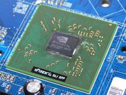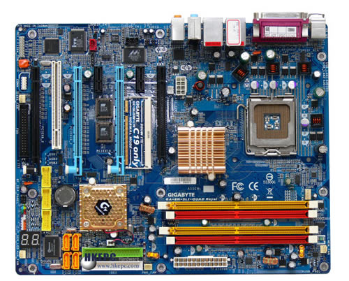 打开主机板上的晶片组散热器,可以看到nForcer 4 SLi X16 Intel Edition是由C19与CK804所组成,而据Gigabyte表示在8N-SLi-Qual-Royal使用的C19晶片组为A3版本,已经完全解决了与Intel Pentium D 820出现不兼容的情况,同时亦解决了与部份记忆体出现不相容的情况。