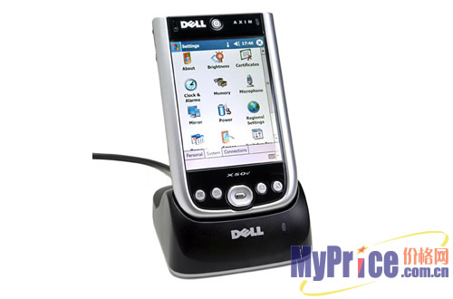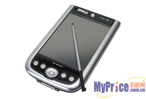DELL AXIM X50v和其上一代产品AXIM X30在外形设计上有了很大的改变,由于其强大的硬件配置和3.7英寸的大屏幕,在体积上和重量上X50v都不能算是一台非常小巧的产品,其实际的体积为:73 mm x 119 mm x 16.9 mm,重量175g。也正是因为拥有可靠的性能和先进的多媒体能力,才真正适合商务工作者使用。
