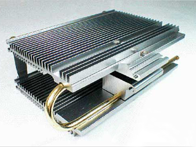 两块核心散热片的散热区域总共可达到1200平方厘米左右,从形状上来看,铝质散热器在外边缘的设计上仍然是延用了鱼鳍状,这也是增大散热面积的有效方法。大型散热片不仅可以固定热导管,而且也同样起到为热导管辅助散热的作用。它的大小同样约为12cm×8cm,正反两面也分布着密集的散热鳍片,由于具有超大的散热面积,使得此款散热器在无风扇状态下也同样具有强劲的散热能力。另一部分是与核心接触的小散热片,它的在厚度1.5cm,大小与图形核心相当,它光滑的表面能够与核心紧密的接触,从而保证散热片可以更快的吸收核心传来的热量。另外九州风神热导管显卡散热器就运用了热导管的这种特性设计了一条“U”型热导管,这也是这款散热器的核心。