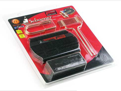 这款Tt Schooner热管散热器还是采用了流行的透明包装,大片的红色也符合Tt一贯用色风格,这款Schooner显卡散热器,他附带了内、外各两组散热模块,由两块大型散热片组成,面积相当的大一看就颇具霸气。由于这款Tt散热产品属于Fanless无风扇系列,这两块散热片就起到了较为重要的作用,在散热片上同样布满了细密的鳍片,排列整齐、精细一看就知道系出大厂之手。
