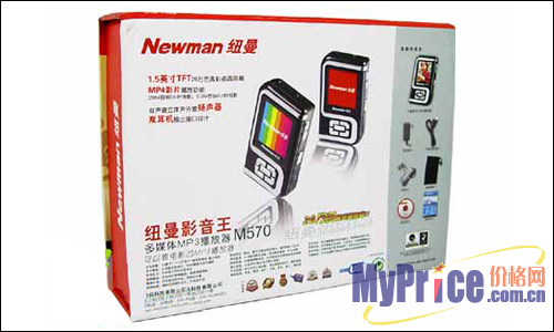 打开包装盒,M570静静的躺在盒子中央。其配件较为丰富,有:说明书, USB连接线,耳机,驱动光盘,充电器等,配件还是比较丰富的,除了固定的配件外还送了个保护套,做工也很精致。