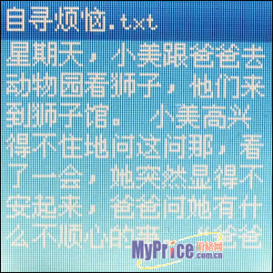 电子书功能方面M570支持TXT格式文件浏览。电子图书功能M360同样具备,显示效果还算清晰,但锐利度不够,无聊的时也可以打发时间。