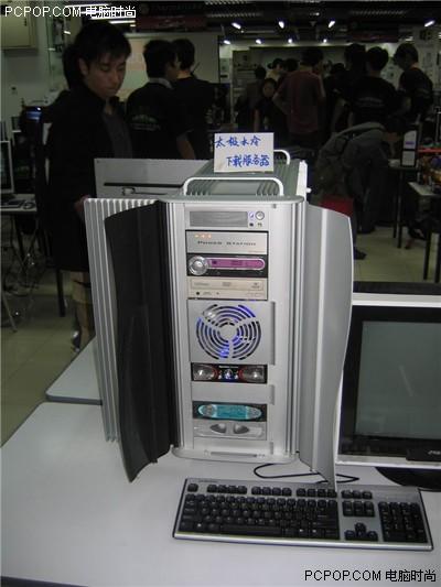 该机箱的散热一般主要是通过风道来散热,依靠的是前面或后面的一些风扇,太极机箱在这方面前面有一个12CM规格风扇,后面也有一个12CM规格风扇,即便不使用电源本身的风扇帮助散热,这中设计已经足够“冰凉”了!在被动的散热上太极本身就是一个“散热片”!其外壳上采用了类似散热片的设计,增强了机箱进行被动散热。还有一点,也就是水冷散热器的作用了,它的两个12CM进风风扇一方面可以给机箱内部提供更多低温空气,一方面由于可以降低机箱外壳的温度。