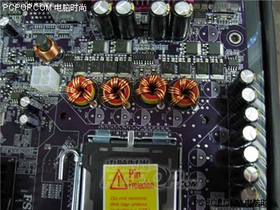 精英945P-A主板的供电部分,采用充足的四相回路供电设计,配备了大量高品质电容,保证系统的稳定运行。
