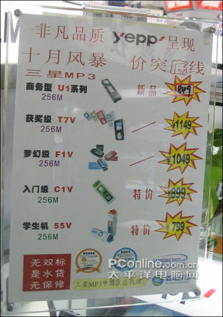 超值降价三:三星经典MP3 YP-T7V暴跌 三星MP3全线大降价!