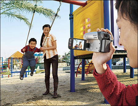 机身配备有10倍光学/120倍精确数码变焦功能,可以自如的进行远/近距离拍摄;具有彩色夜摄系统,即使在黑暗中也能用更加自然的色彩记录影像。它还能够捕捉静止JPEG图片于DVD光盘,可以拍摄640×480像素分辨率的图像,最多能够拍摄上千张的静止图像。它采用了2.7英寸旋转混合液晶显示屏,在屏框上还设有开始/停止按钮,能为使用者提供更大的灵活性。另外该机还备有2.7英寸的16:9宽屏混合型液晶屏,还可防止反射失真,清晰显示屏幕内容。