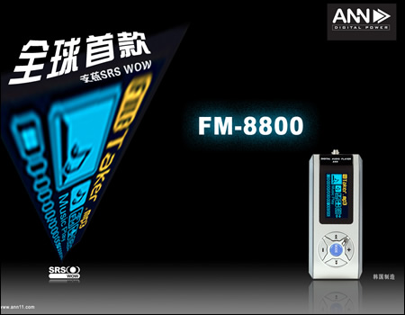 FM-8800支持MP3, WMA, ADPCM格式音乐文件的播放,SRS,WOW环?立体声和重低音,10种EQ和用户自定义EQ,采用了美国SigmaTel3506解码方案,音质表现突出;配合附送的Hi-Fi级N200高保真耳机,动感十足;可以满足用户对音质更加完美的追求。其他功能上,FM-8800支持语言学习,时钟,闹钟,秒表功能,Line-in直录,等功能一应俱全。接口方面,采用USB 2.0,传输速度更快。