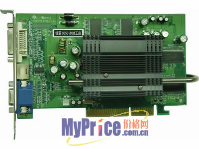 冰峰王座采用Radeon 9550核心,0.13微米工艺制造,硬件支持DirectX9.0。支持AGP8X,核心频率为250MHz,默认显存频率400MHz。采用128bit位宽,更有高达256M的显存容量规格,可以完全满足用户对显卡速度的需要!