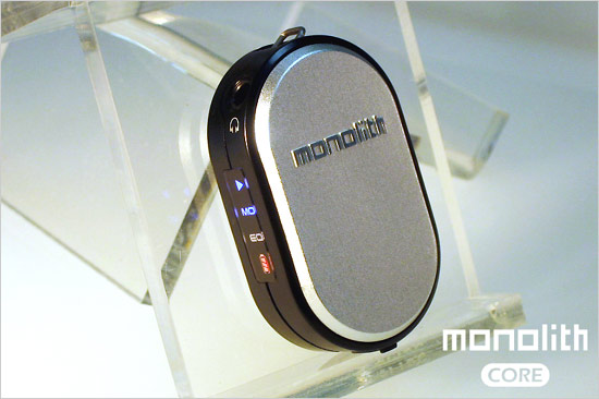 由于体重只有16g,这款机型造型也很小巧,采用闪存作为存储介质,有黑色和银色两款可供选择,容量方面据称有256MB/512MB/1GB可选,另外可能将有2GB版本出现。不过作为最轻的MP3,Monolith MX-1000也做出了较大的牺牲,省略了液晶显示屏。