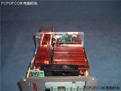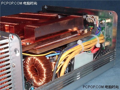 BT理由:静音是电源的大趋势,0噪音电源也不希奇。希奇的是它居然还从机箱里伸出来一块。而且从来也没有见过在电源内部用这么多红彤彤的纯铜散热片。