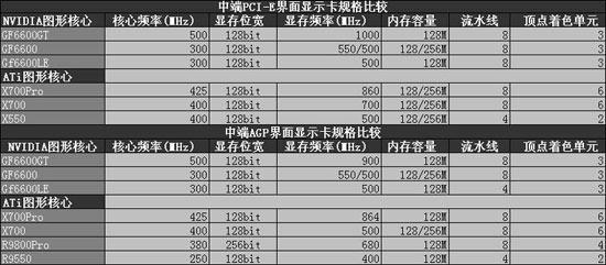 综观市场上800-1000元价位的中端显卡,目前主要采用的是NVIDIA公司的GF6600和ATI公司的X700(Pro)图形核心。虽然只有这两种图形核心,但派生出来的特别版显卡数量却多得吓人。面对诸多新产品,消费者往往难以作出抉择。我们都知道,合理搭配、追求最高性价比是DIY玩家的第一要诀。为此,笔者将在下文中与大家探讨特别版中端显卡的技术特点和选购方法。