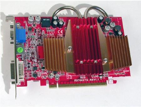 天扬(GRANDMARS) HP700PROG-C3静音版是市面少有的无风扇式X700 Pro显卡。由于X700 Pro图形核心的工作频率高达425MHz,要设计成被动式散热其实有一定难度。此显示卡前后面均使用超大型散热片,并用两根粗的导热管相连接。在实际使用中,两边散热片的温度很高,但在可接受的范围内。需要注意的是显卡背部那块散热片很厚,有可能会顶到北桥散热器,选购时应注意主板PCI-E插槽与北桥散热器之间的空间是否足够。