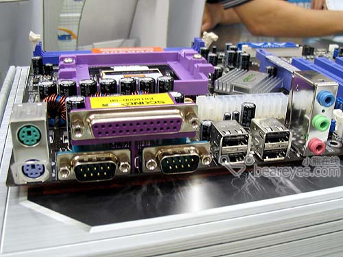 功能方面,这款主板仅仅提供了ALC655音频芯片,能够提供六声道的音效输出功能。不过,略显可惜的是,在此款产品上我们并没有看到最常见的10/100M网络芯片,大家如有上网的需求,须单独添置一款网卡即可。