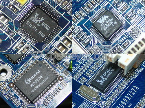 功能方面,这款主板板载了一颗ALC655声卡提供了对6.1声道的支持;同时,板载一颗VIA的VT6103L网卡提供10/100M网络支持;主板监控部分由一颗winbond的W83697HF芯片来完成。此外,第四张图右下角的RTM360芯片通常用在脉冲信号发生器前端,用来提高脉冲信号的可靠性和稳定性。