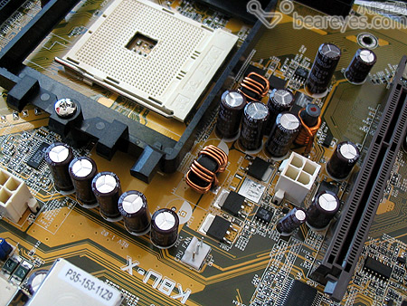 供电方面,这款主板采用了两相回路供电设计,其四周辅以众多高品质大容量的日系KZG直立式电解电容。