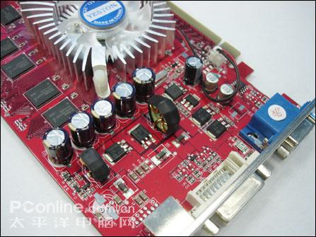 完整的低通及供电部分,显卡采用核心、显存分离式独立供电设计,电容也全部采用高品质的红宝石品牌产品,用料扎实。