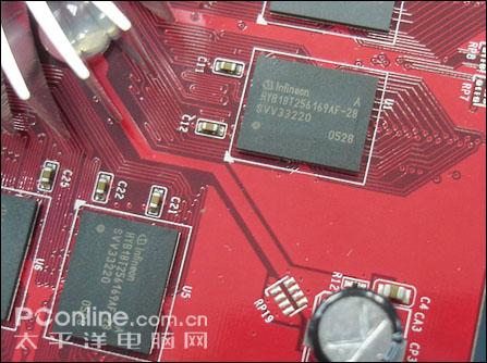 2.8ns DDR2显存颗粒,256M/128bit规格,默认频率700Mhz。