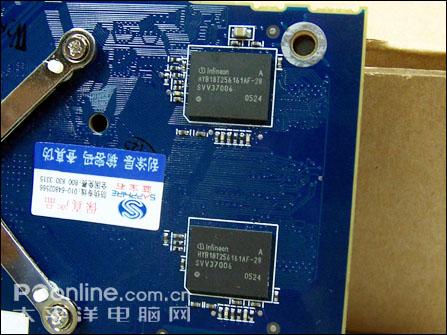 英飞凌2.8ns GDDR2显存颗粒,256M/128bit规格,理论运行频率可达700Mhz以上。