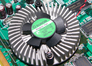 如果没有看到PCB上印著Asus的Logo,很难想像它真的会是Asus的产品,一向注重散热器设计的它竟用上一个毫不起眼的散热器,更没有贴上Asus的Logo,细心一看竟然是Sunon推出的磁浮风扇,其寿命比一般的Ball Bearing风扇更佳,而且更为宁静,只可惜散热器质素一般,奉欢超频用家先换个散热器。