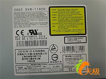 铭牌印有光驱的出厂日期,是05年的9月份,产地中国