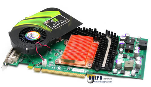 图上为Inno3D Geforce 6800GS,据Inno3D表示Geforce 6800GS只会推出nVidia公版,并不会交由AIC自行生产,故此大部份厂商的Geforce 6800GS也是一样的。Geforce 6800GS采用和Geforce 7800GT一样的P317 PCB设计,虽然时脉提升至比Geforce 6800Ultra还高的水平,但Geforce 6800GS还是采用Single Slot散热器设计,全因核心的散热片改用上导热能力较高的铜质制作,同记忆体则拥有铝质散热片,并采用导热管把热力传导散热器出风口提高散热效果,造工要比Geforce 7800GT的散热器更好,相信也没有厂商会会为他自行再制作散热器。