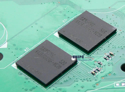 记忆体方面,Geforce 6800GS采用8颗Samsung -2.0ns GDDR3颗粒,时脉为1GHz合共256MB/256Bit,虽然ATi Radeon X1600XT用上更高速的Samsung -1.25ns GDDR3颗粒,运作时脉达1.38GHz,但由于它只是256MB/128Bit的架构,在频宽方面nVidia是以32GB/s比22.08GB/s领先ATi Radeon X1600XT,不过ATi X1600XT加入了Ring-Bus架构,大大减少了记忆体控制器的延迟值,故此ATi Radeon X1600XT对比Geforce 6800GS还是要测试过才能分胜负。