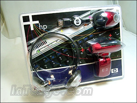 您看,这就是刚才说的惠普(HP)外设套装,产品的外包装还是挺漂亮的。