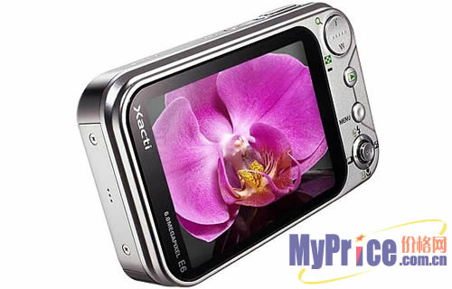 Xcati E6的最大亮点就是背后那块23万像素的3英寸大型液晶屏,目前使用超过2.5英寸液晶屏的数码相机只有极少数的几款。3英寸的大型液晶屏可以让用户得到更佳的视觉体验,并更方便的与其他人共享美好一刻。另外Xcati E6还支持拍摄VGA(640×480像素)分辨率的不间断MPEG4格式有声动画,而且拥有黑白、怀旧等数码特效。