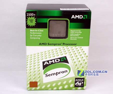 在产品的外包装盒的左上角清晰的注明了“2500+ SOCKET754”字样。