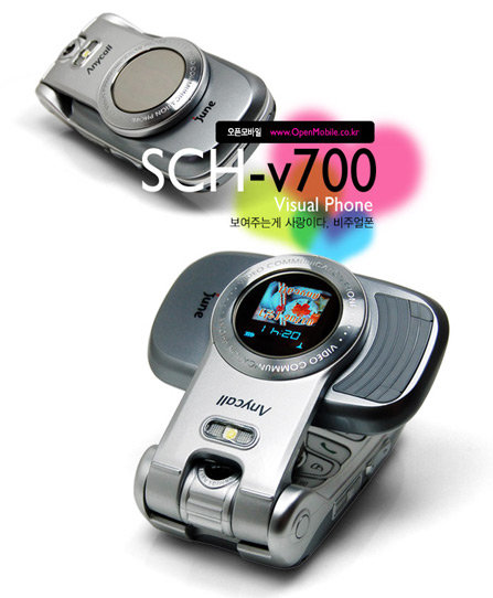 去年三星SCH-V500第一次把横向旋转屏幕的设计理念引入到折叠手机,并获得了“槌头鲨”的美誉。此后,三星将这一设计风格发扬光大,相继推出了更小巧美观的V600和功能大幅增强的DMB手机B250。而今天要介绍给大家的就是采用同样造型设计,并拥有全球首款PMP(Portable Media Player,即便携式媒体播放器)手机称号的最新旗舰SCH-V700。V700的整体造型与V600保持一致,并不像V500那么粗犷狰狞,外屏的超大金属圆环装饰使整机未来感十足。功能方面,V700的QVGA屏幕,200万像素,200MB内存并支持RS-MMC卡扩展都体现了其王者之风。正如E159之于V600,V700的大陆对应版本相信也已经在紧锣密鼓的计划之中。
