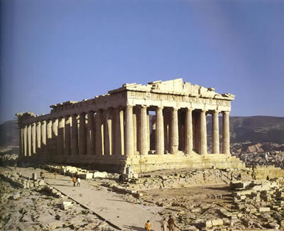 希腊的巴特农神庙可以说是西方,以至世界上最早的古代大庙宇,出现在基督教产生以前430年,是著名建筑师和雕刻家菲迪亚斯的杰作。巴特农神庙有“希腊国宝”之称,是希腊祭祀诸神之庙,以祭祀雅典娜女神为主,又称“雅典娜巴特农神庙”。在雅典,无论从哪个方向你都可以看到海拔156米的卫城,而位于卫城最高处的巴特农神庙则是卫城最耀眼的明珠。在经历了两千多年的风风雨雨之后,神庙已经只剩下46根高达10.43米的那多立斯式圆柱坚守在那里,不过,你仍可从这气势磅礴的柱子感受它当年的辉煌。