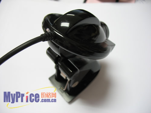 深圳海天地的摄像头产品一向在用户群中有很好的口碑,今天我们Myprice评测室就收到了QQ电脑眼V6这款送测产品。那么130万像素、10倍数码变焦的它表现如何呢?您就随我一起看看吧。一. 外观 这款QQ电脑眼V6一改以往偏重Q版的造型,取而代之的是时尚、神秘的黑色前卫造型。中间是一个椭圆体,两侧和上方都有一道棱边,总给我一周太空中不明飞行物的感觉。它精巧别致的外观设计获得了外观专利。