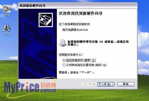 驱动安装结束后,插入摄像头,就可以按照提示完成摄像头的安装。