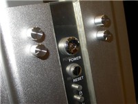 通过图片大家可以看到,前面板的铝板不是一般的厚,难怪机箱会这么重!在打开的前面板上提供了音量调节按钮,和电源、重启键,还有硬盘、电源工作指示灯。