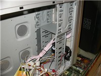 在机箱风扇控制部分的下方,是前置USB/音频接口。机箱自身提供了风扇,但还有风扇空位,如果有需要的朋友可以买回去自行加装。据商家介绍则板上的风扇还是带LED彩灯的,系统运行的时候非常耀眼。目前该产品商家报价480元,对于这么一款用料奢华、功能丰富的机箱来说应该比较超值了,而且机箱成色基本全新,面板上大都带有保护膜。如果感兴趣的朋友可以到市场来看看。