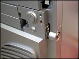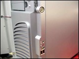 在机箱面板扣锁下方,我们还可以看到前置音频、1394和USB接口。