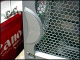 鲨鱼机箱的侧挡板设计很创意,表面两个流线型设计的鲨鱼腮状进气口十分抢眼。扣锁将侧面板锁住,必须将手柄向前推才可卸下侧面板。